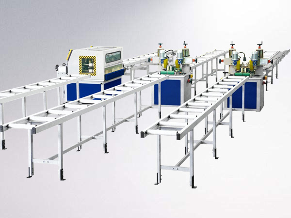 1、開齒穿條在同一臺設(shè)備一步完成,可以用兩臺開齒穿條機(jī)實現(xiàn)兩組鋁型材的組合;